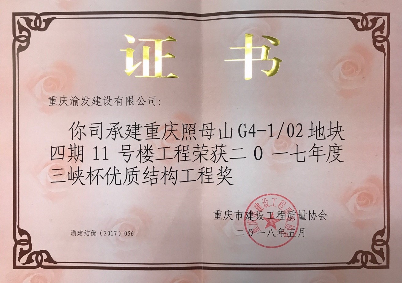 我司承建的重慶照母山G4-1/02地塊四期11號樓工程榮獲2017年度"三峽杯"優(yōu)質結構工程獎。"三峽杯"優(yōu)質結構工程獎是重慶市市級建設工程質量獎,每年評選一次...